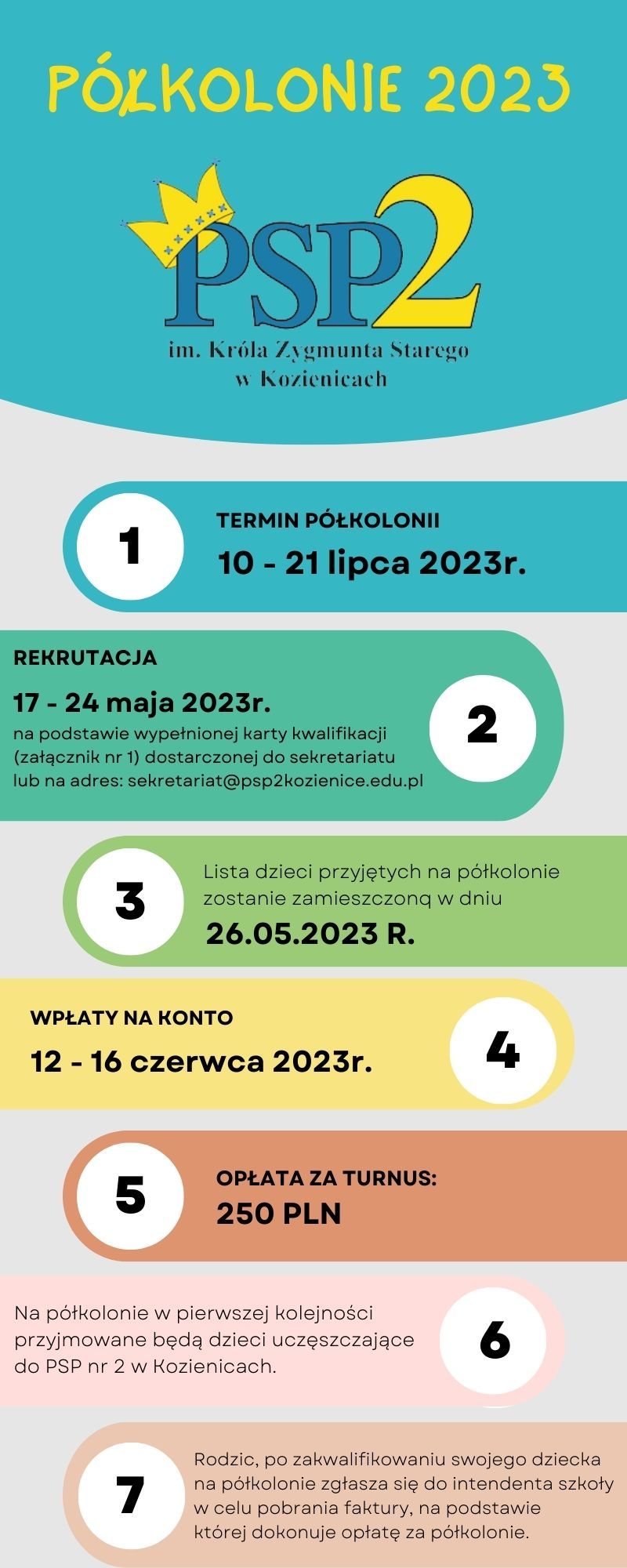 Półkolonie w naszej szkole przez Redaktor · 16 maja 2023 Załączniki nr 1 do Regulaminu Półkolonii Regulamin półkolonii 2022_2023 Udostępnij