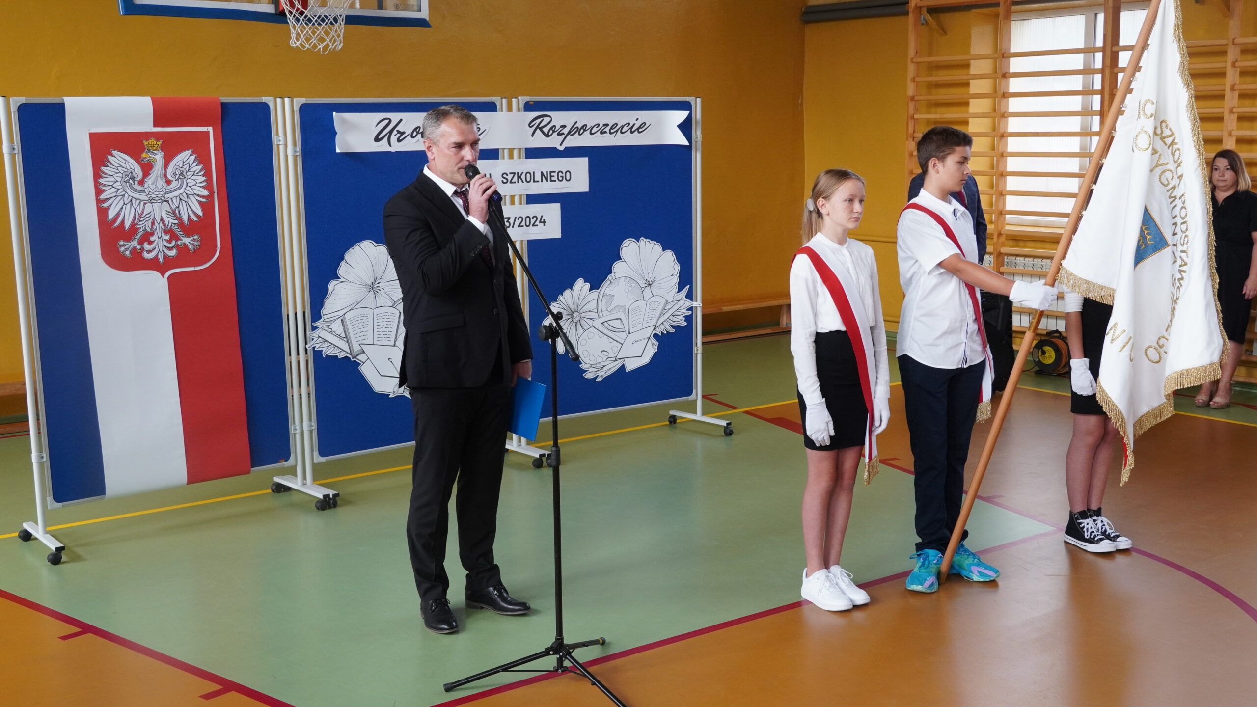 Dzisiaj, 4 września 2023 roku, na sali gimnastycznej odbyła się wyjątkowa uroczystość rozpoczęcia nowego roku szkolnego.